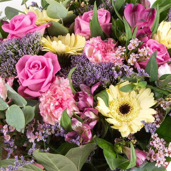 Please note that due to the seasonal availability of flowers it may be necessary to vary individual stems from those shown. Our skilled florists may substitute flowers for one similar in style, quality and value. Where our designs include a sundry item like a vase or basket it may not always be possible to include the exact item as displayed. If such an occasion arises we will make every effort to replace the item with a suitable alternative.